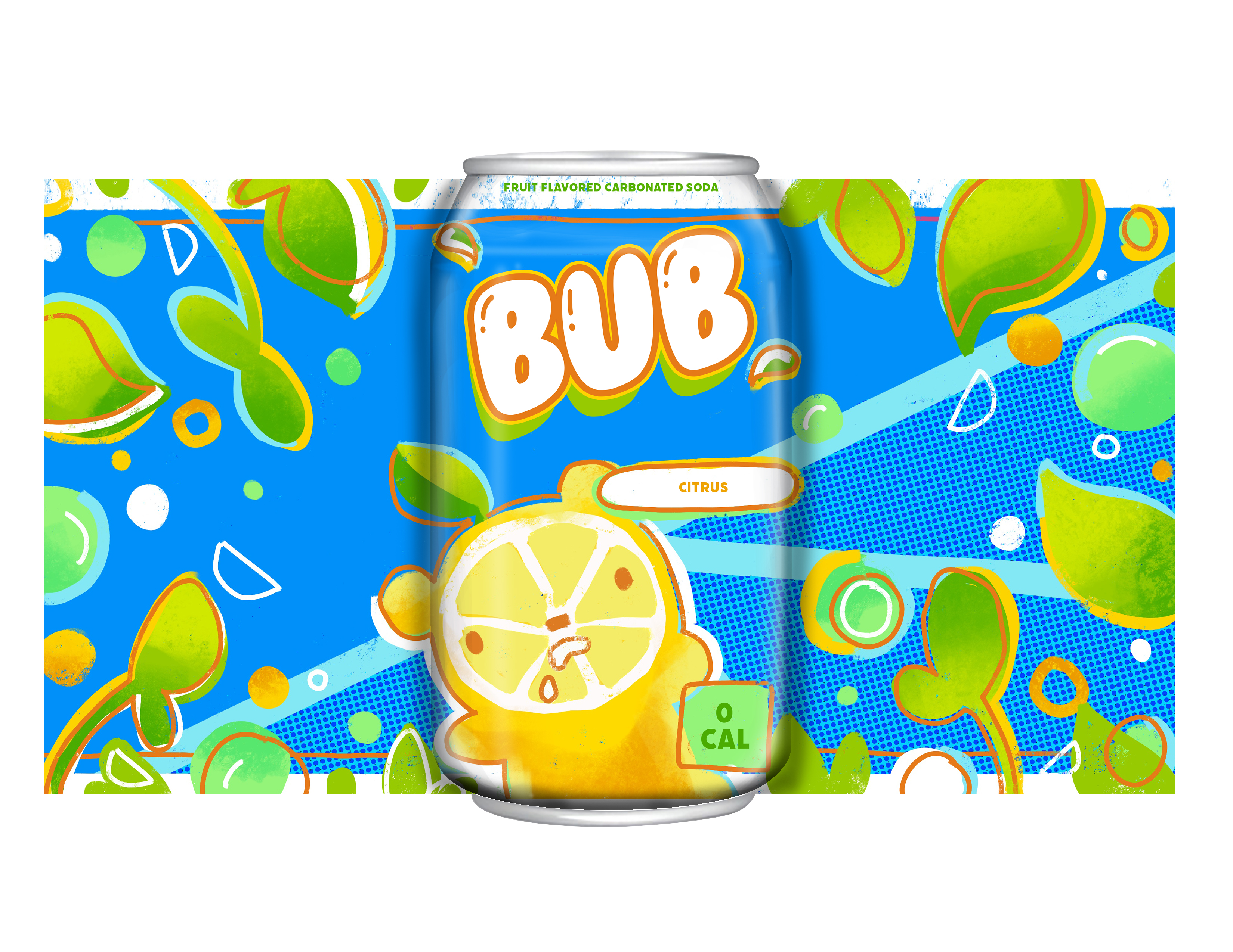 Illustrative can designs for fruit-flavored carbonated soda